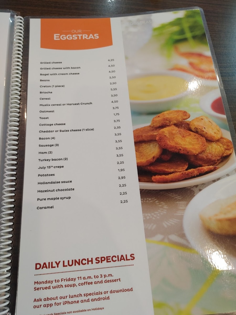 Welcome to Eggsquis, a delightful breakfast haven located in L'Ile-Perrot, QC. This eatery stands out for its warm atmosphere and exceptional service, where the friendly staff, including standout figures like James and Olga, create a welcoming environment. Guests rave about the generous portions, making it perfect for both casual diners and larger gatherings.